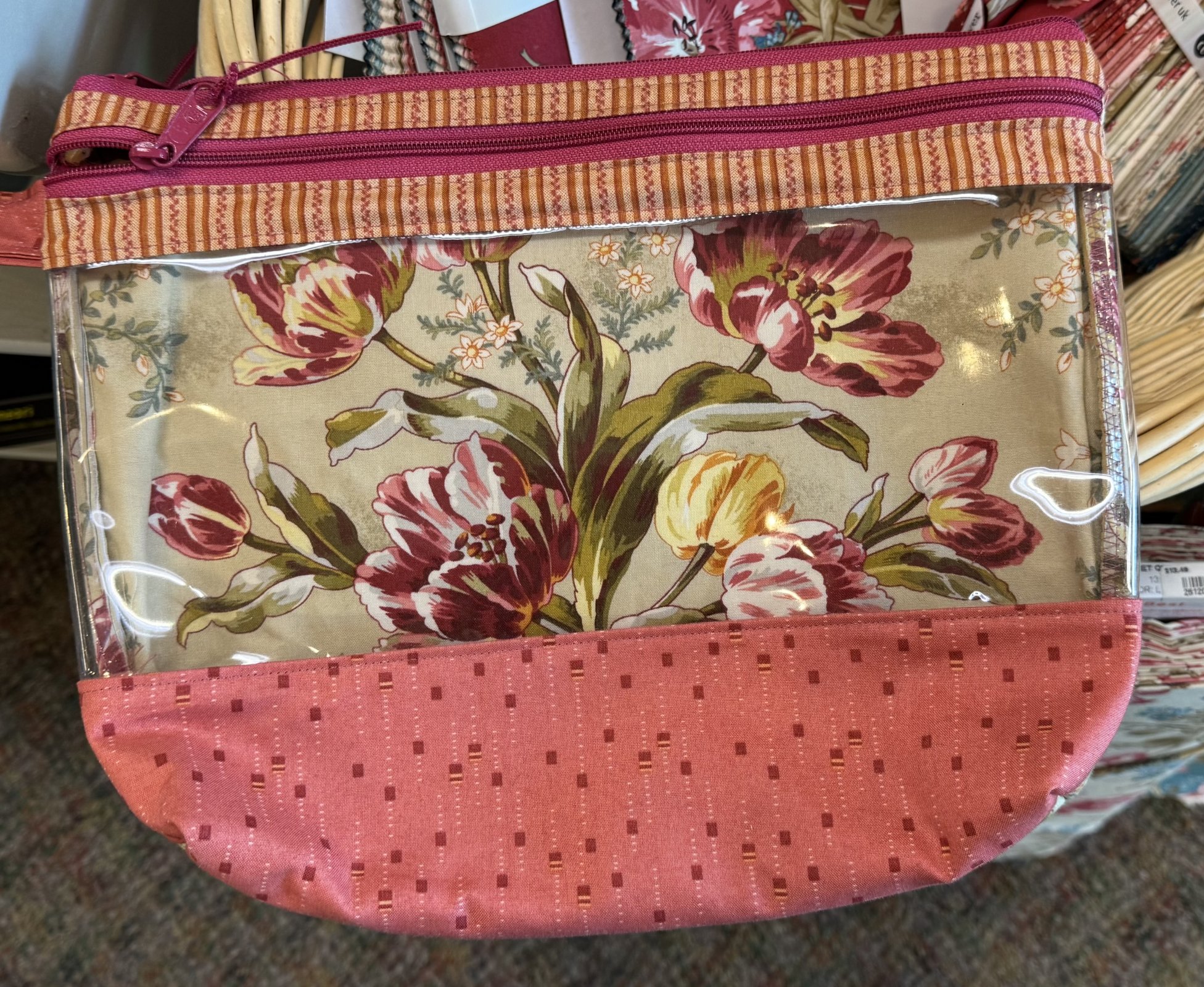 The Maddilyn Pouch is the cutest bag for many different uses. Great for your sewing needs, a cosmetic pouch, pencil bag or just to give as a gift. It features a vinyl front allowing you to see whats inside.Three sizes to choose from.